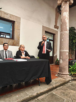 Dr. Federico González Santoyo (Rector-INIDEM), Lic. Francisco Ramírez Flores (Secretario de la Contraloría), Lic. Azucena Marín Correa (Magistrada de la 5ª sala del Tribunal en materia Anticorrupción y Administrativa del Gob. Mich.),